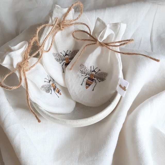 洗い晒した目にも心地よいリネン巾着に蜂の手刺繍を施しました。 旅先でのアクセサリーケース、アロマオイルをたらした布を入れサシェとしてなど、ご利用方法はさまざま。 防虫剤を入れ引き出しに忍ばせても◎ towelket tokyoのブランドコンセプトでもあるサスティナブルの観点から、お洋服を裁断した裁ち端を捨てるのではなく、大切に手を加えることで新たな命を吹き込みました。 リネン100% 刺繍糸 コットン100% W 8.5cm H 12cm _________________________ ご注文を受けてからの制作となります。 お支払い後のご注文内容の変更はできません。 お客様都合の返品はお受けできませんので、ご不明な点は予めご質問ください。 詳細や細部写真等お送りさせて頂きますので、お気軽にお問い合わせください。 手作りの良さをご理解頂ければ幸いです。 【 発送 】 お支払い完了日から21営業日以内に発送いたします。 【 配送方法 】 ・ゆうパック 追跡 / 補償あり ・レターパック 追跡あり towelket tokyo is shipping internationally using EMS (International Postal Service). Conditions differ depending on country. Please check whether you can receive EMS from Japan before purchasing. There is also a risk that your luggage may be opened and checked by CIQ. Thank you for your understanding.