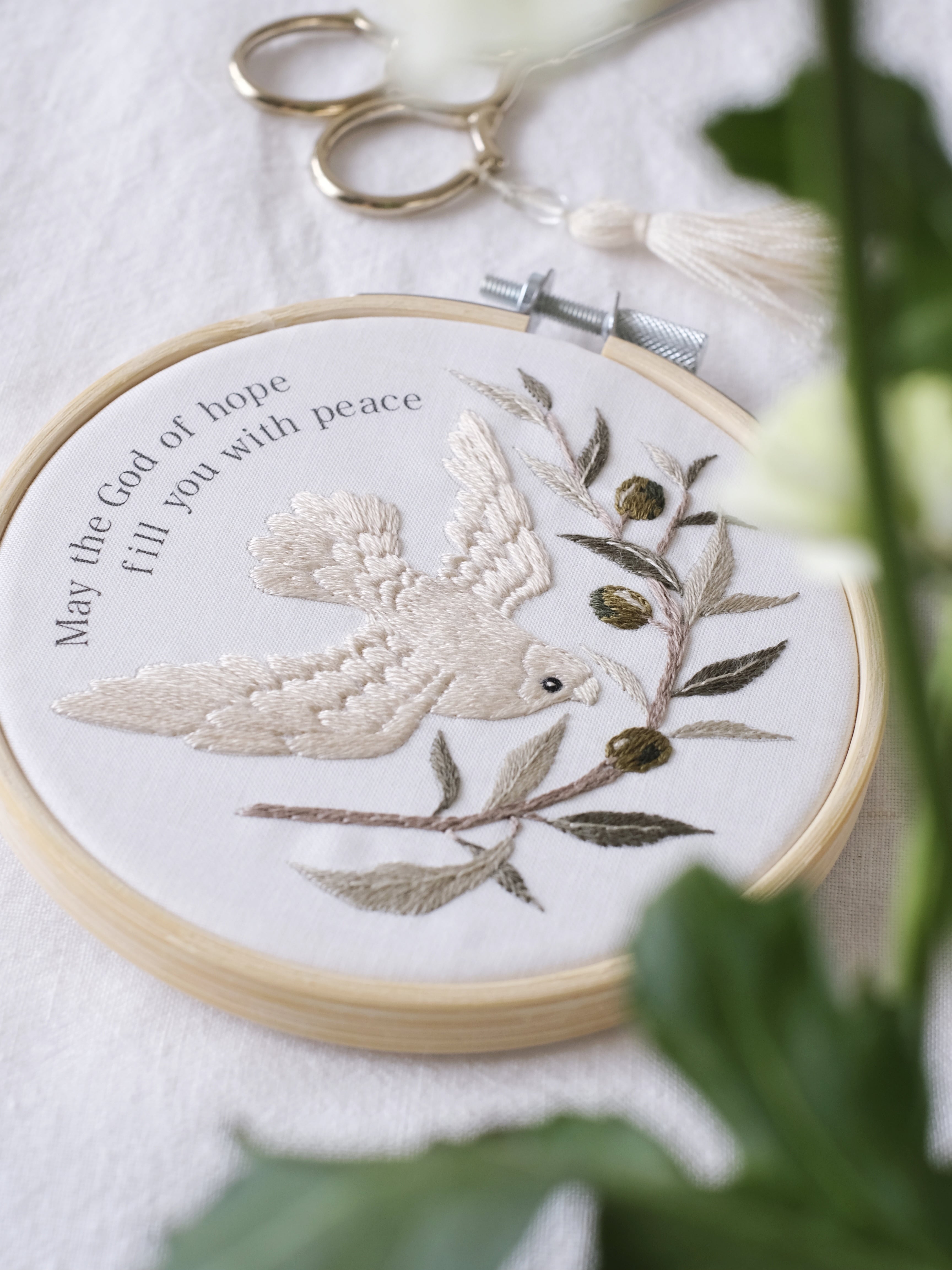 鳩とオリーブのモチーフは「平和と新しい始まり」のシンボルです。