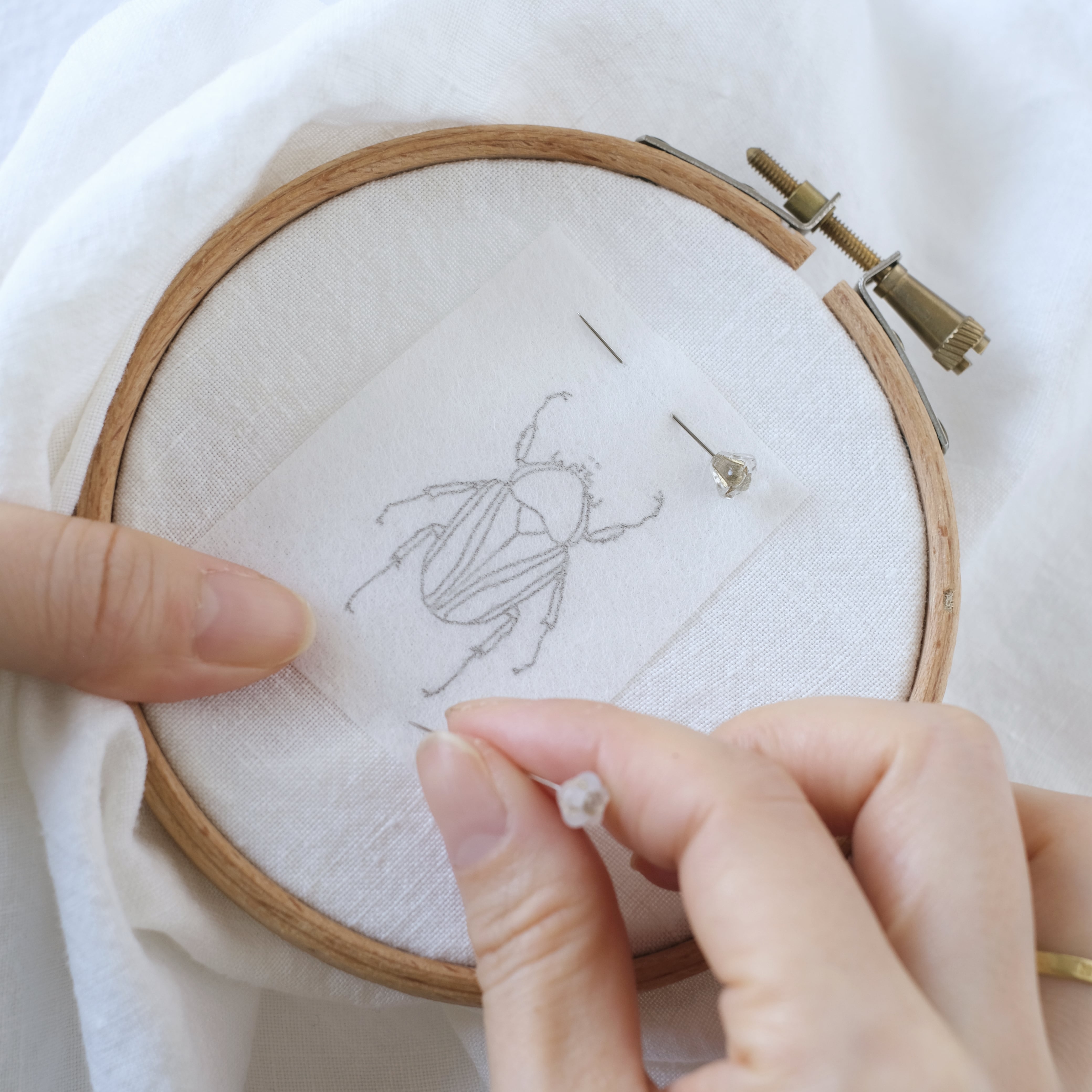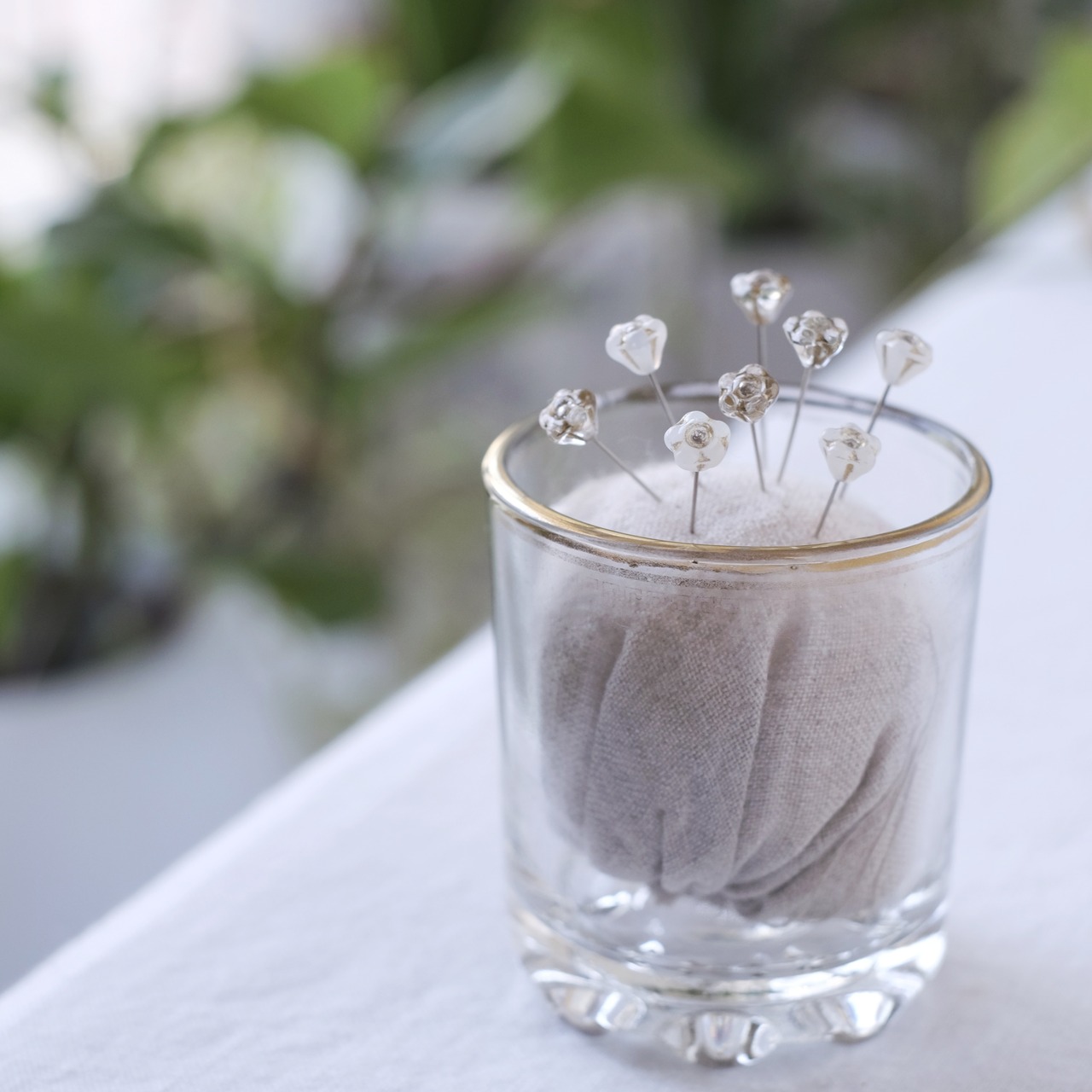 ボヘミアンガラスでひとつひとつ手作りされたまち針は、刺繍時間をより楽しく、愛おしい時間にしてくれます。
