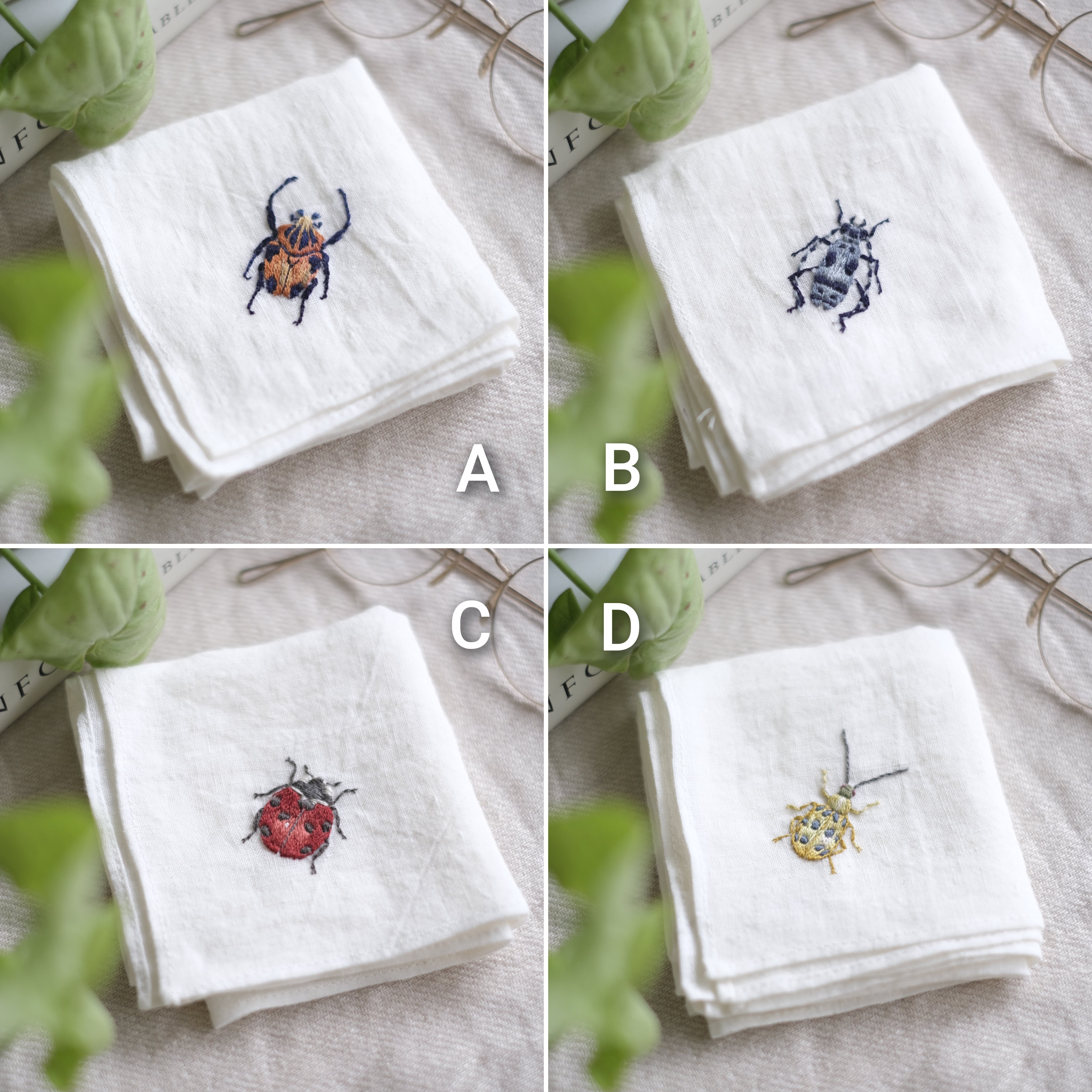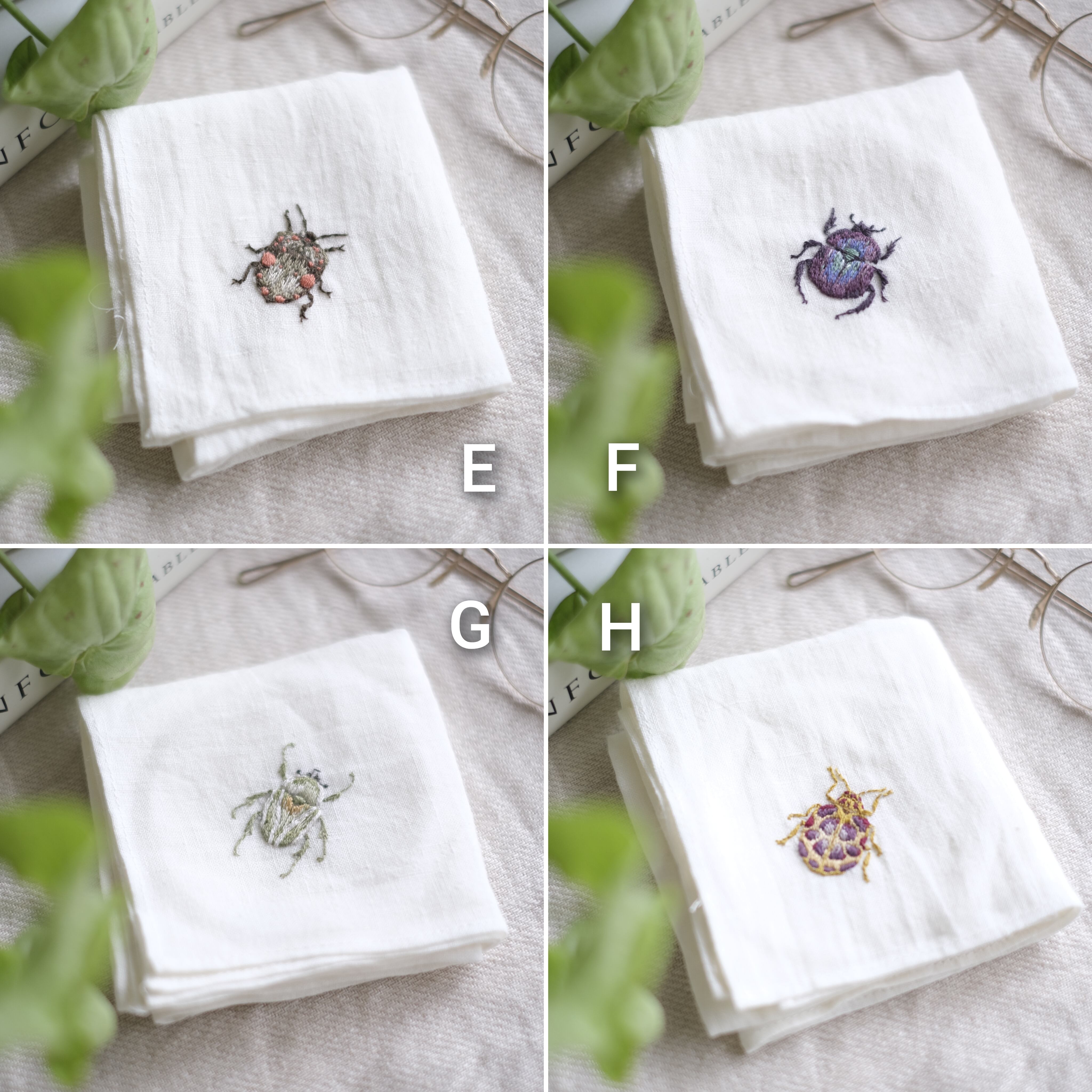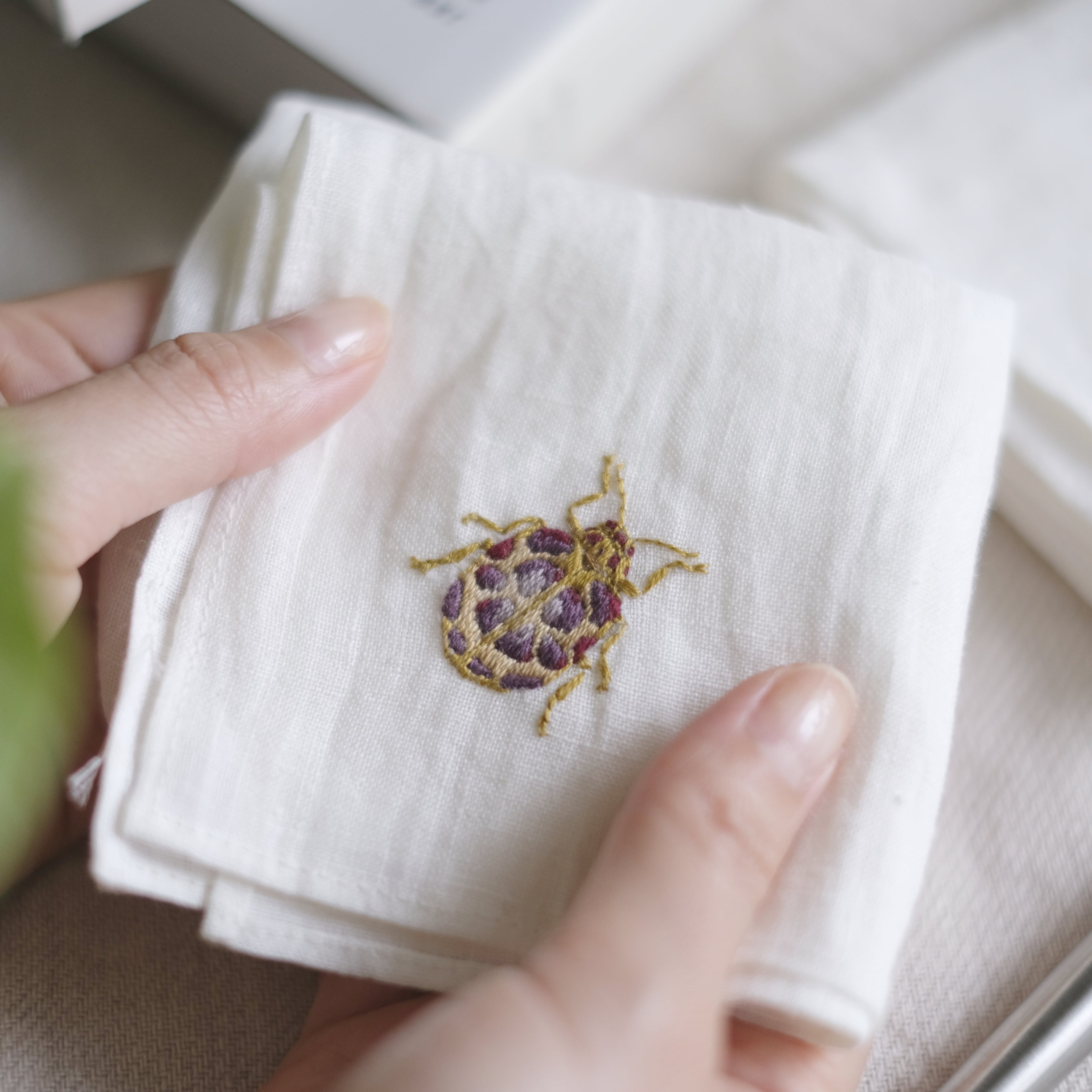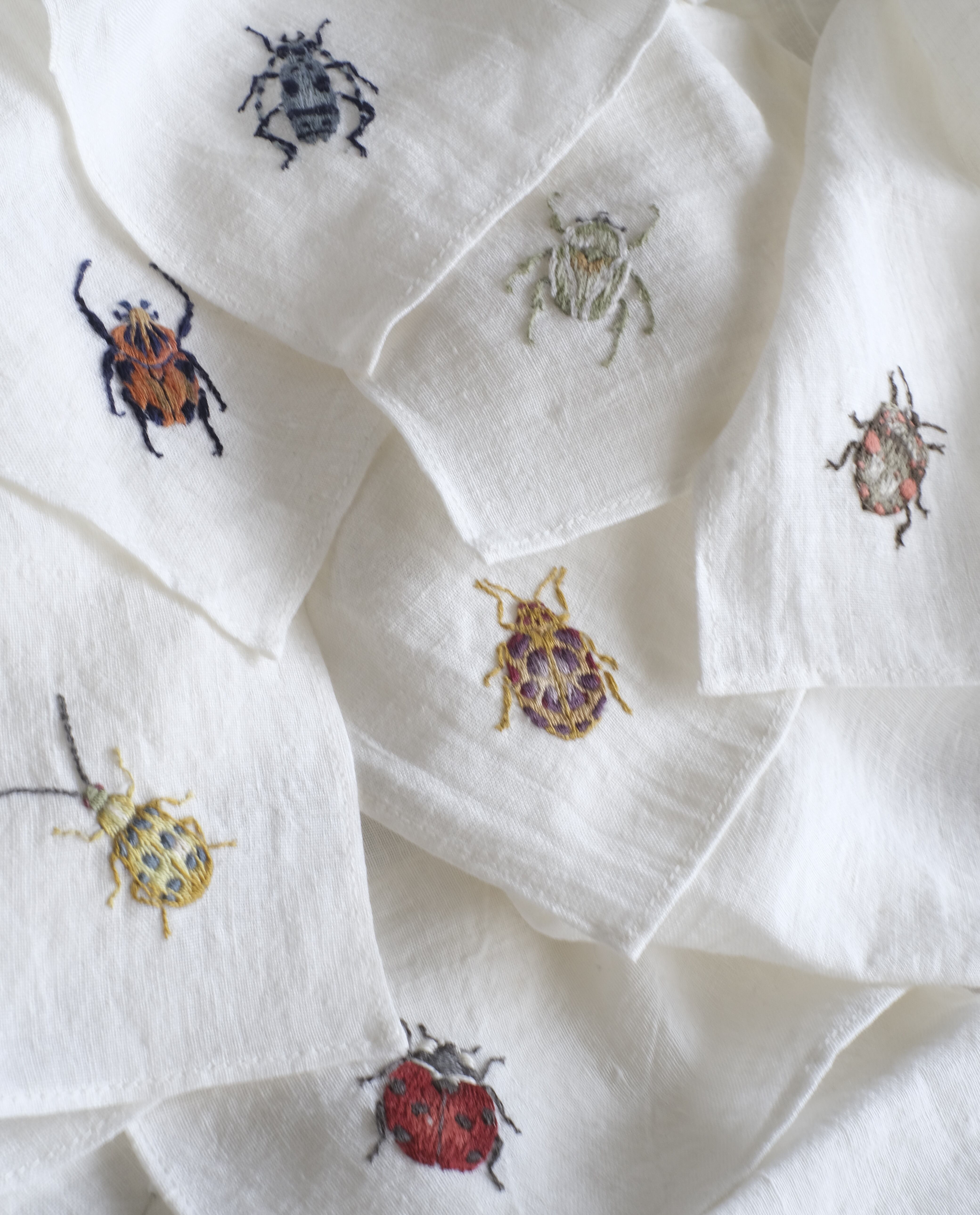 繊細な虫の手刺繍は、機械刺繍にはない高級感があります。